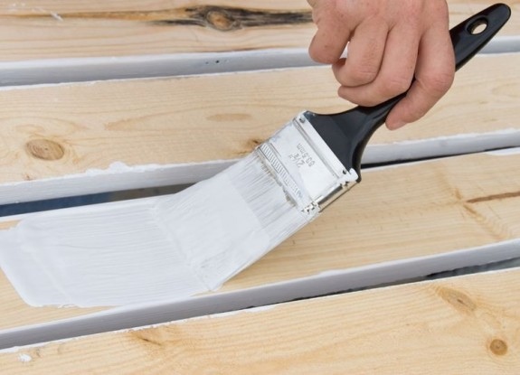 Покрасьте ящики при помощи акриловой краски и кисти в необходимый вам цвет (в нашем примере – белый). Краску рекомендуется наносить минимум в 2 слоя, а затем дать ей высохнуть.