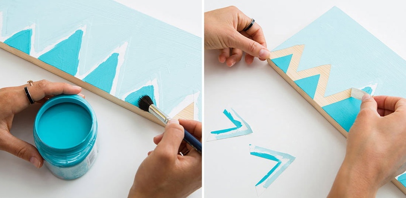 Наклеиваем малярный скотч в соответствии с выбранным рисунком.